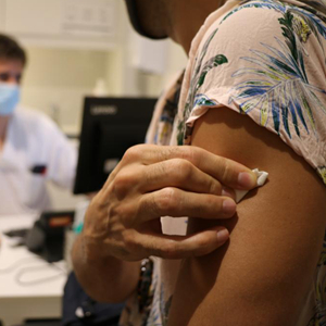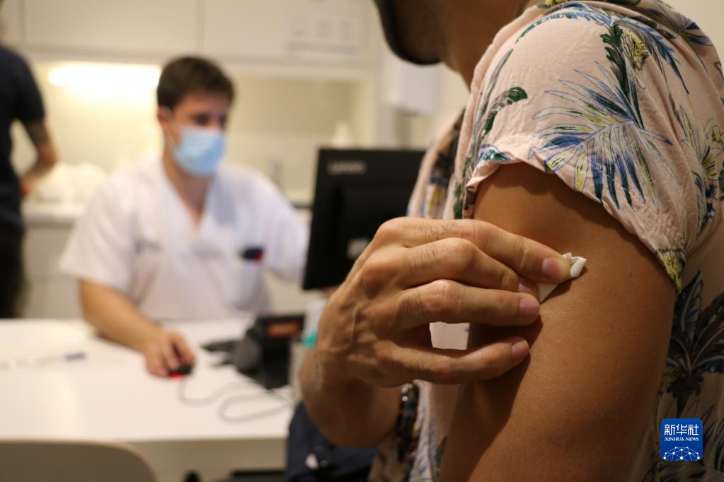 8月3日,一名男子在西班牙巴塞羅那一家診所內接種猴痘疫苗。