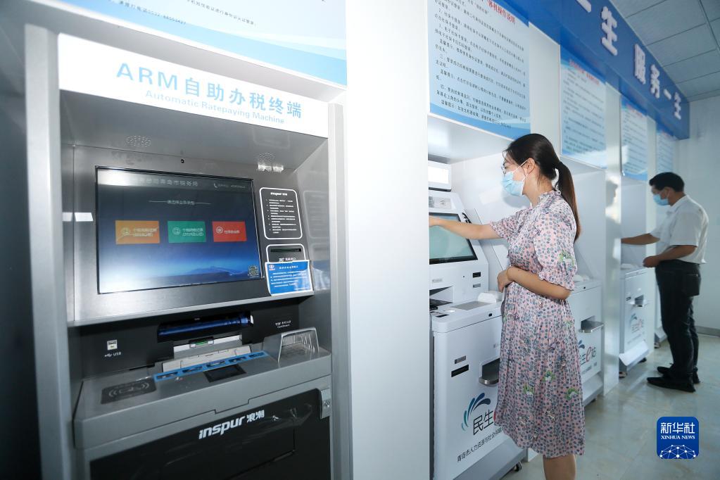 8月4日,市民在青島市即墨區社會保險自助服務廳辦理相關業務。