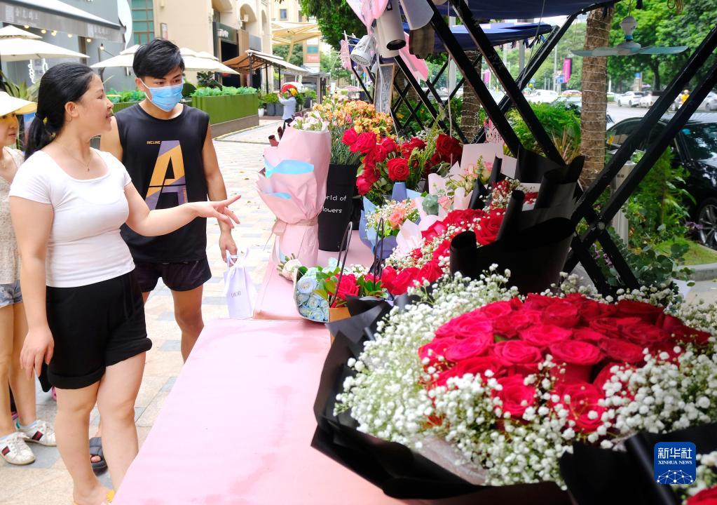 8月4日,消費者在廣西南寧一家花店挑選鮮花。