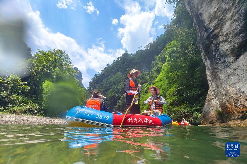 夏日時節,位于貴州省施秉縣的杉木河景區迎來大量喜愛漂流的游客,在欣賞優美風光的同時,盡享夏日清涼。