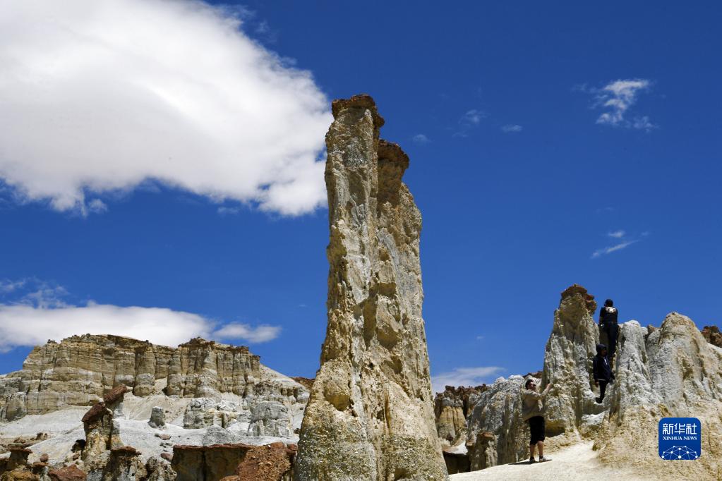 8月3日,游客參觀西藏札達(dá)縣的札達(dá)土林。