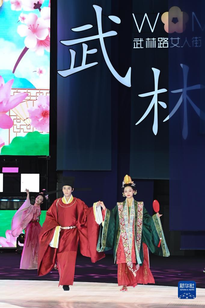 當日,2022杭州仲夏夜——拱墅區“武林衣秀·宋韻杭州”暨武林路女人街開街儀式在武林廣場上演。活動除了走秀,還融入了宋韻元素,呈現宋代風韻。