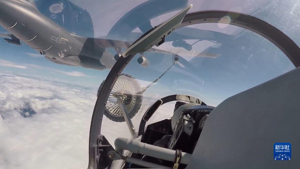 8月4日,東部戰(zhàn)區(qū)空軍航空兵某旅同時出動多架戰(zhàn)機(jī),飛赴臺島周邊海域執(zhí)行任務(wù),進(jìn)一步檢驗(yàn)部隊(duì)實(shí)戰(zhàn)能力。這是戰(zhàn)機(jī)進(jìn)行空中加油(視頻截圖)。