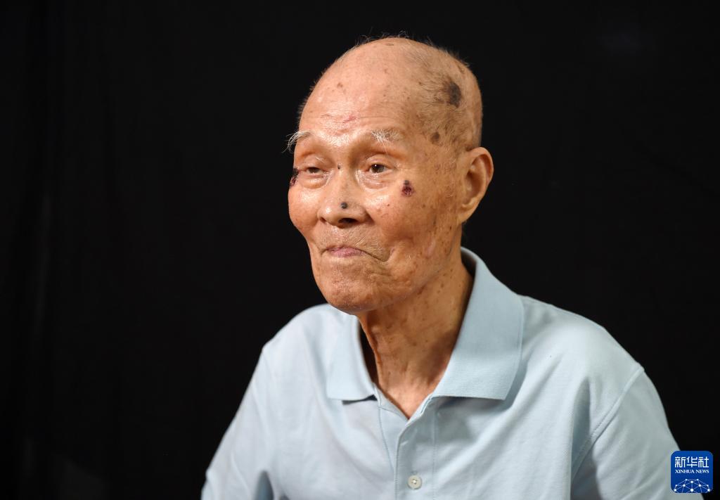 7月4日在安徽省池州市拍攝的抗戰(zhàn)老戰(zhàn)士劉炳林。