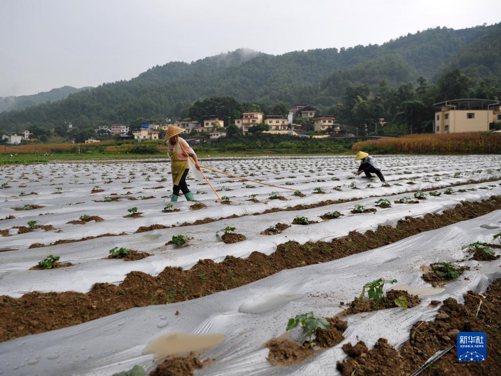 8月5日,農民在貴州省黔南布依族苗族自治州羅甸縣逢亭鎮祥腳村的田間勞作。
