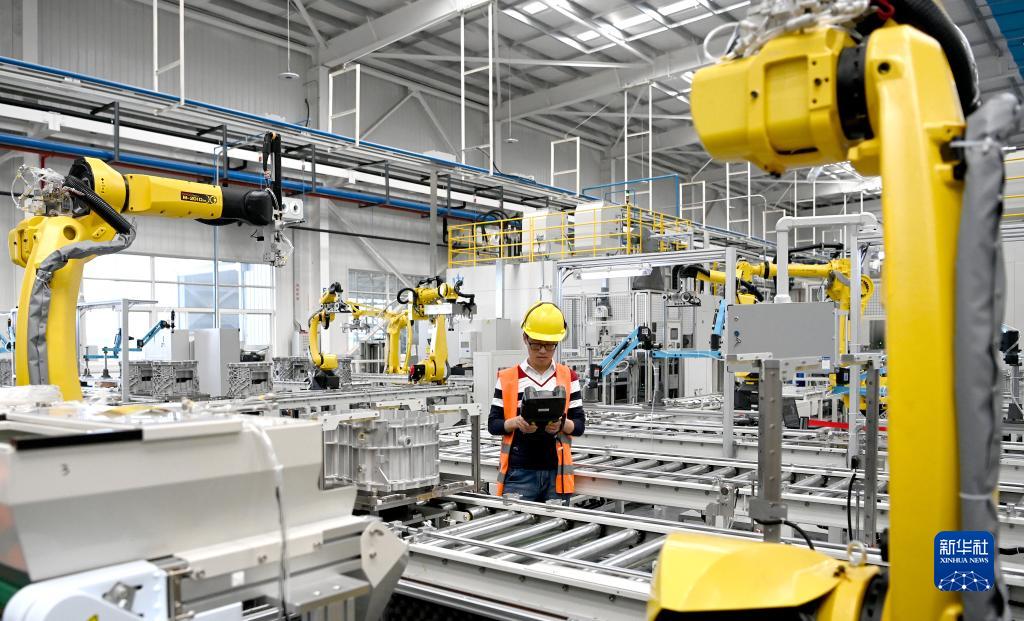 法士特西安高智新公司變速器零件數字化生產線生產現場(2022年4月21日攝)。