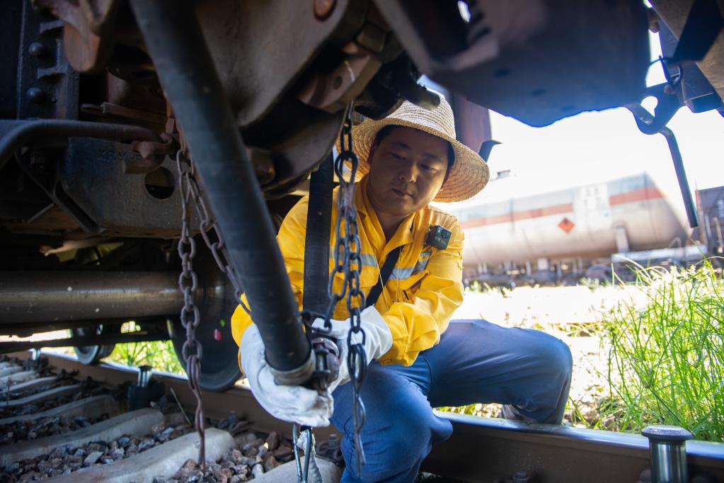 8月5日,在湖南株洲北站編組場,工人為滿載電煤的列車編組。