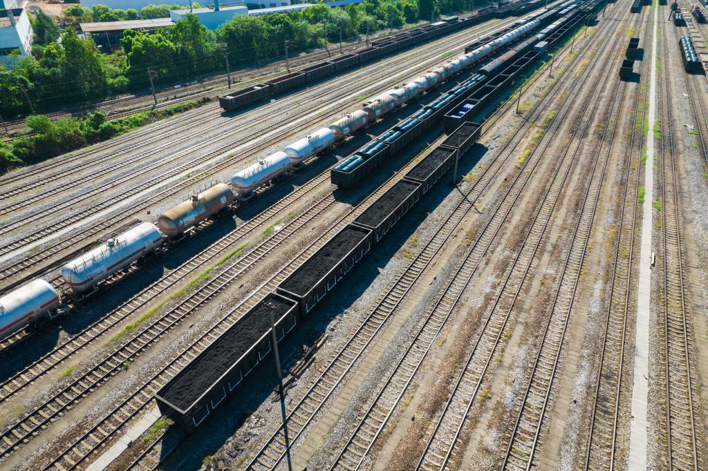 8月5日,滿載電煤的車廂進入株洲北站下行編組場(無人機照片)。