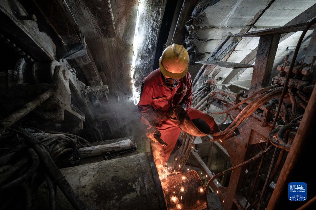 8月4日,在高黎貢山隧道內(nèi),掌子面施工人員進(jìn)行焊接作業(yè)。