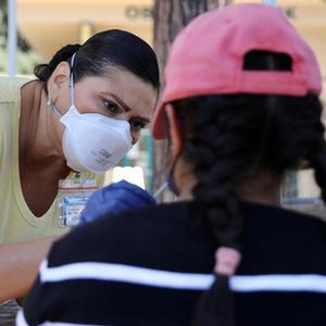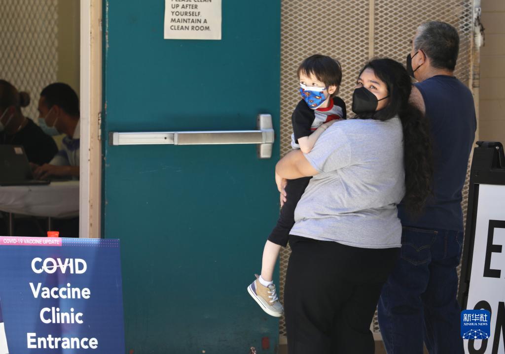 8月5日,在美國加利福尼亞州洛杉磯縣,戴著口罩的當地居民等待接種新冠疫苗。