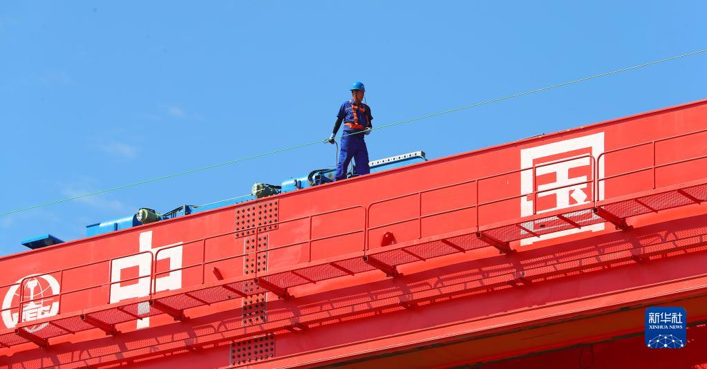 8月6日,中鐵九局工程技術人員在箱梁架設現場施工作業。