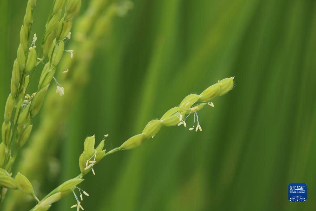 8月1日,在云南省曲靖市沾益區金龍街道的一處稻田里,水稻抽穗稻花開放。