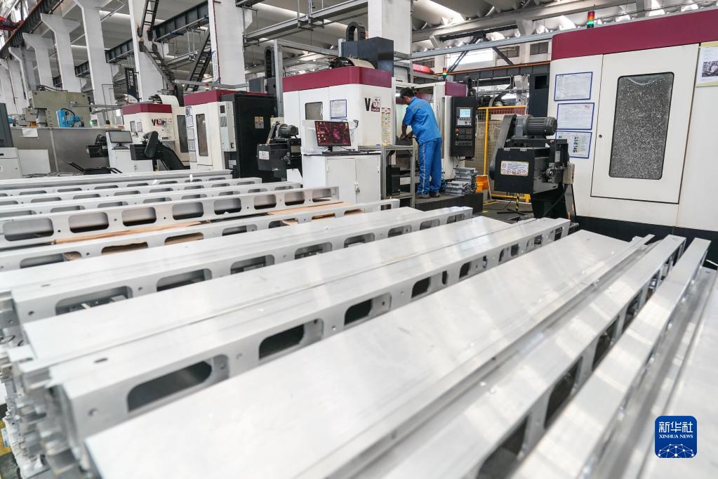 8月6日,從事軌道交通車輛配套產品研發生產的今創集團股份有限公司的工人使用激光切割機生產。