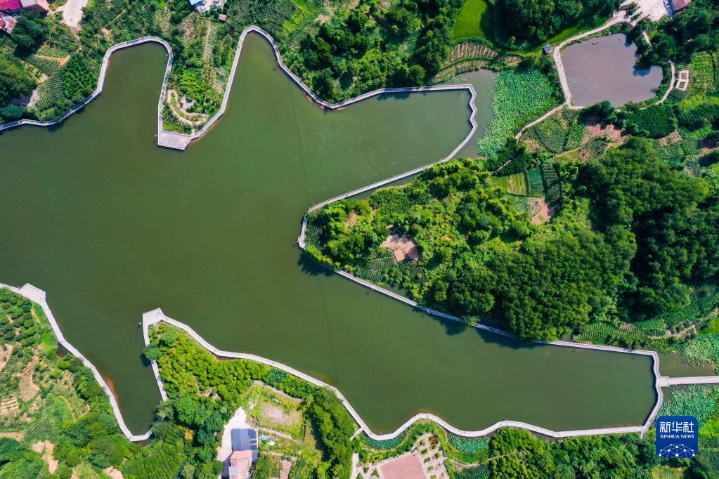 這是8月2日拍攝的重慶市萬州區恒合土家族鄉鳳安社區飲鹿湖景色(無人機照片)。