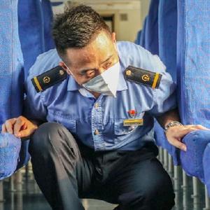 作為庫內守車小組成員,丁璐和羅福剛在列車完成當天運營后,會跟隨列車入庫直到次日清晨列車重新調上站臺,期間進行全列巡視、設備檢查、用品更換等工作。