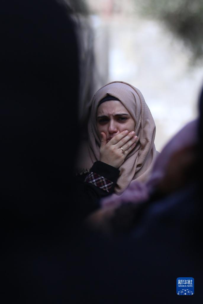 8月6日,在加沙地帶南部城鎮汗尤尼斯,一名女子在空襲遇難者的葬禮上哭泣。