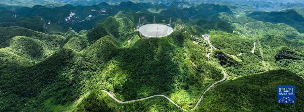 “中國天眼”全景(無人機(jī)照片,2022年7月22日維護(hù)保養(yǎng)期間拍攝)。