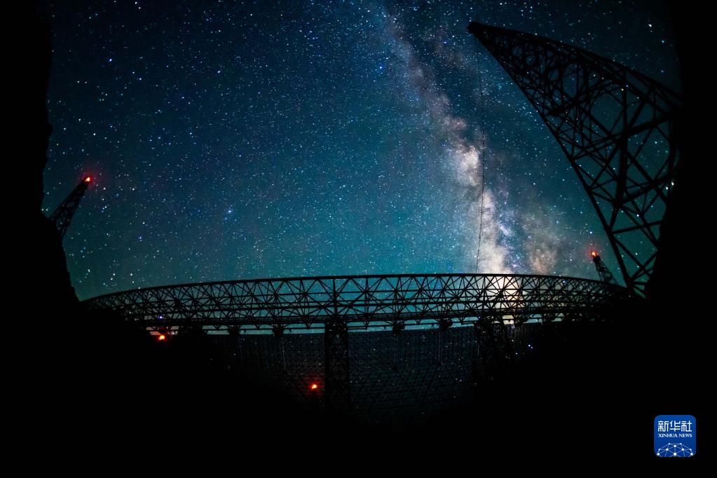 銀河下的“中國天眼”(2022年7月25日維護保養期間拍攝)。