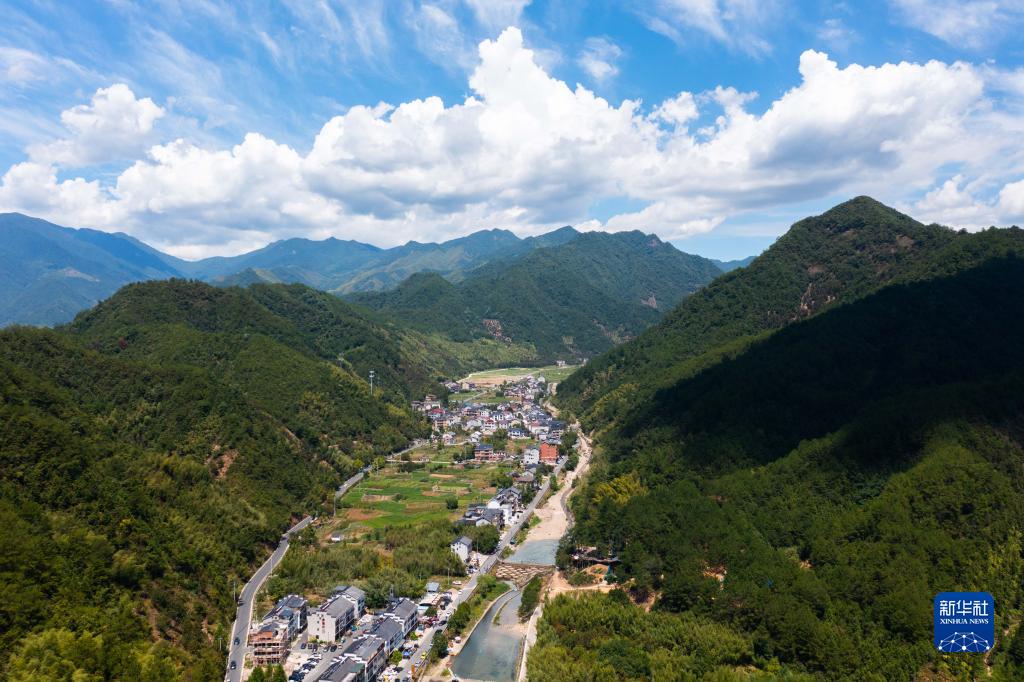 8月7日,空中俯瞰杭州市臨安區(qū)龍崗鎮(zhèn)龍井村(無人機(jī)照片)。