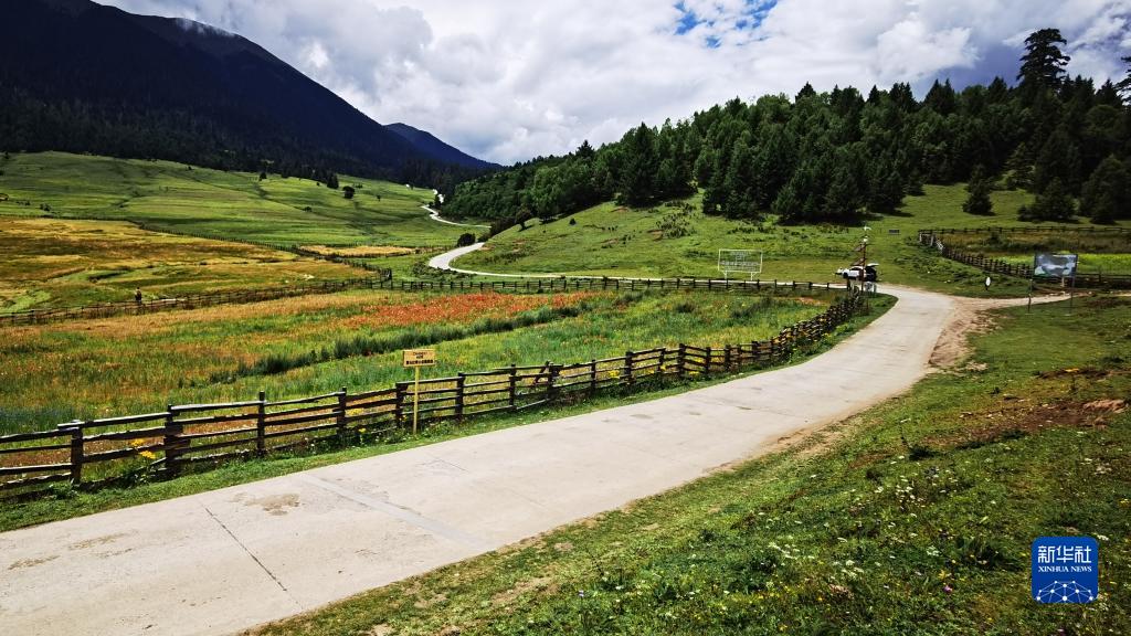 夏日的魯朗鎮,溪水潺潺,鮮花盛開,藏式村寨點綴其間,勾畫出一幅恬靜、優美的“高原山居圖”。