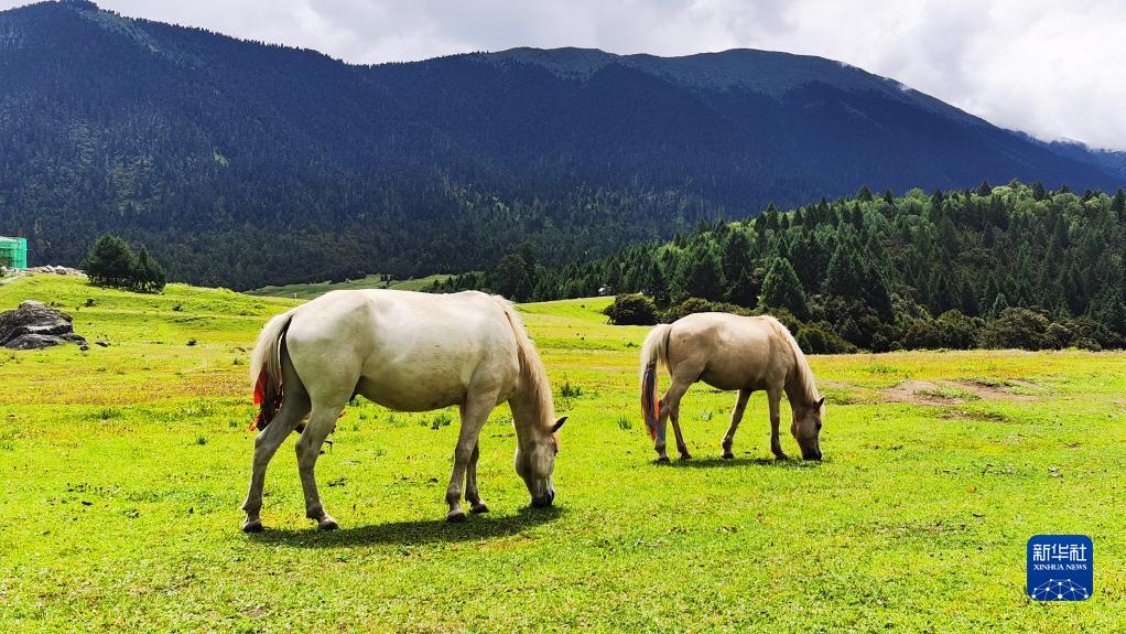 這是魯朗花海牧場景區(手機照片,8月6日攝)。