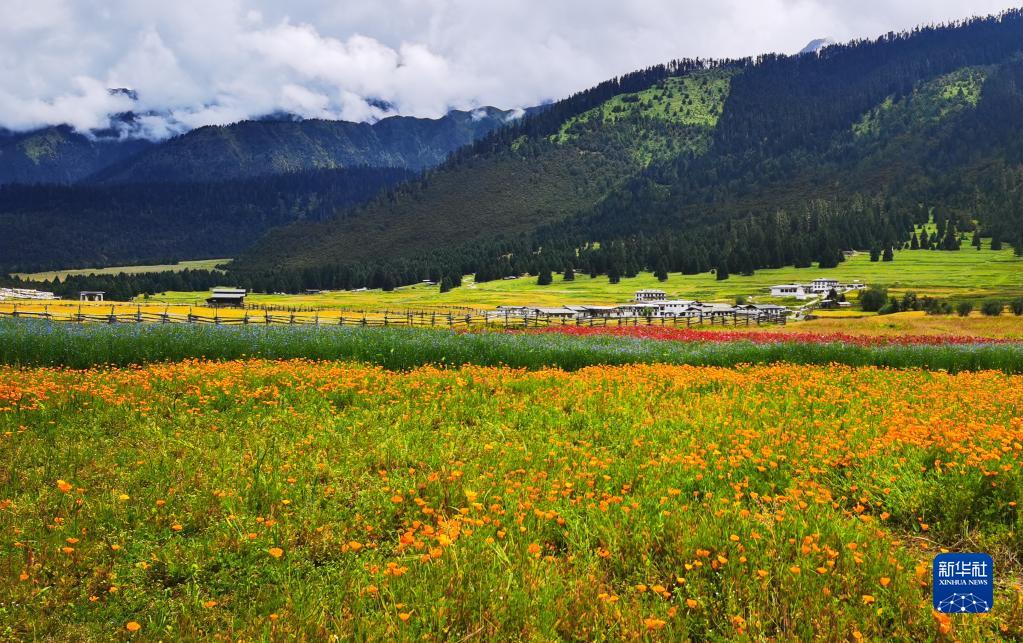 這是魯朗花海牧場景區(手機照片,8月6日攝)。