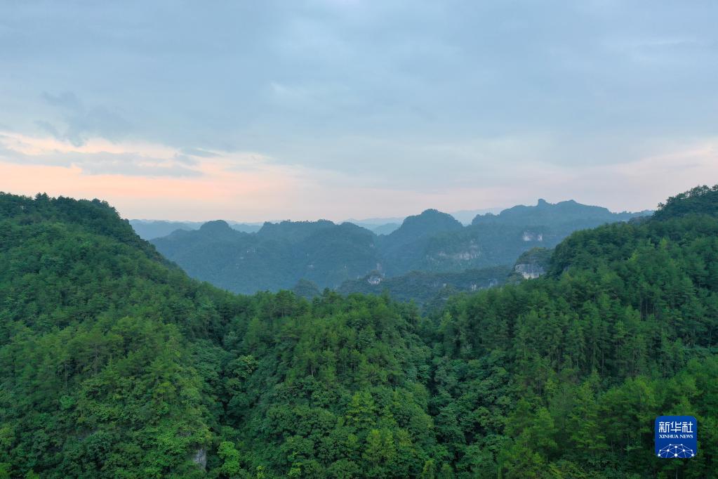8月7日拍攝的云臺山清晨風光(無人機照片)。