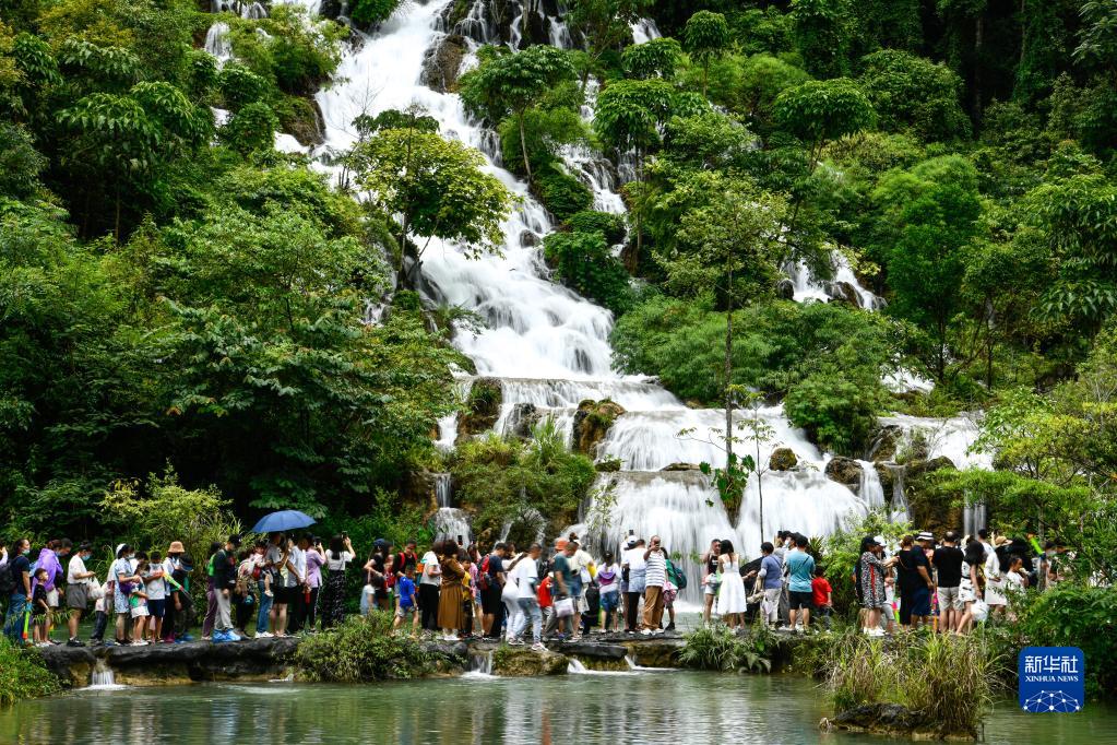 暑假期間,眾多游客來到貴州省荔波縣,暢游青山綠水,感受世界自然遺產地之美。今年以來,荔波縣各景區相繼推出多項促進旅游消費政策,在做好疫情防控的同時,助力旅游市場逐步復蘇。