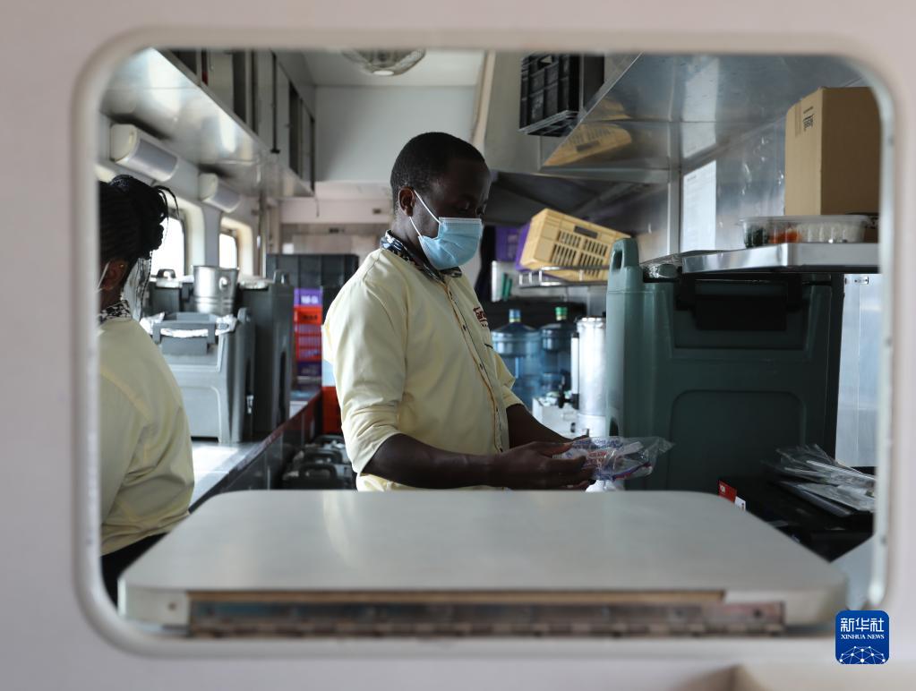 7月29日,餐車員馬克在肯尼亞蒙內鐵路客運列車的餐車工作。