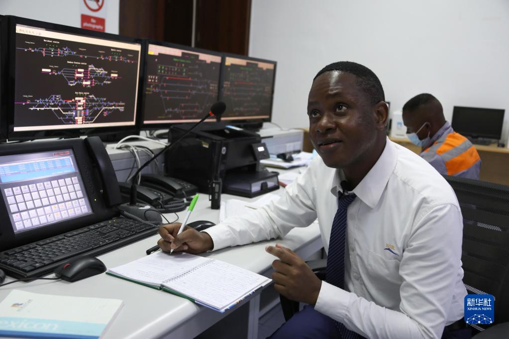 7月27日,車站值班員彼得在肯尼亞蒙內(nèi)鐵路蒙巴薩終點站工作。