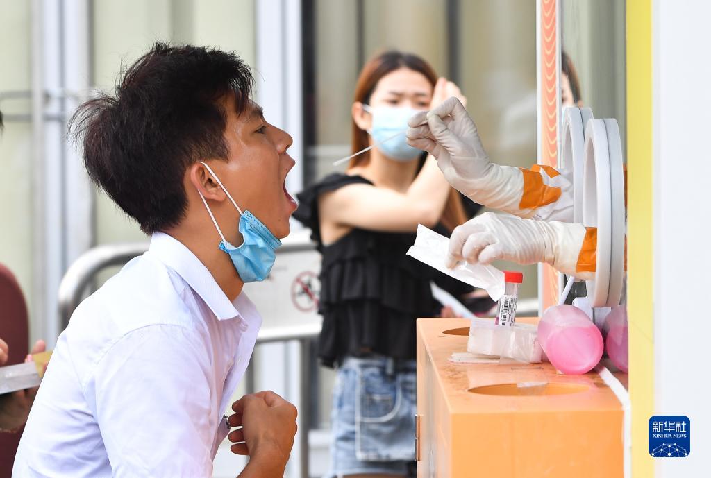 8月7日,居民在海口市龍華區萬象城采樣點進行核酸檢測。