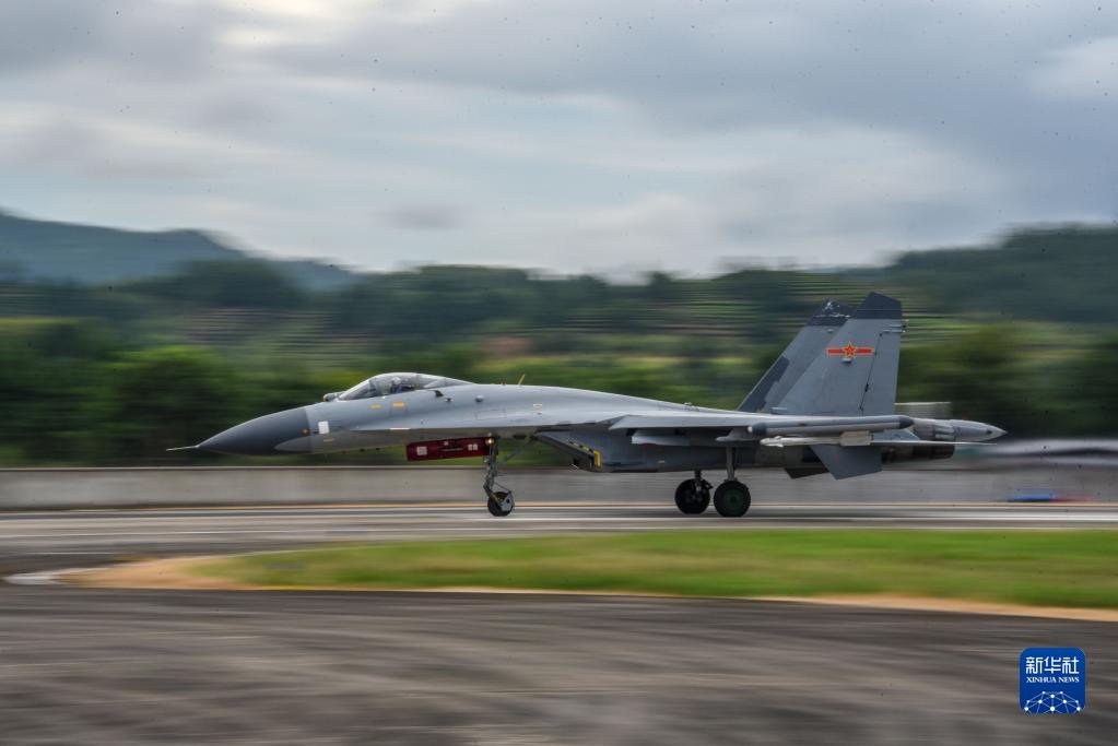 8月7日,中國人民解放軍東部戰(zhàn)區(qū)按計(jì)劃,繼續(xù)在臺(tái)島周邊海空域進(jìn)行實(shí)戰(zhàn)化聯(lián)合演訓(xùn)。這是戰(zhàn)機(jī)正在加速,準(zhǔn)備起飛。新華社發(fā)(付敢 攝)