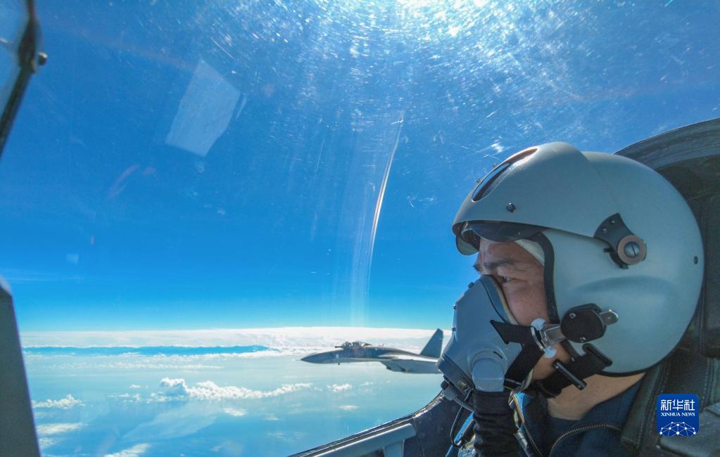 8月7日,中國人民解放軍東部戰區按計劃,繼續在臺島周邊海空域進行實戰化聯合演訓。這是戰機正在進行編隊飛行。新華社發(王新潮 攝)