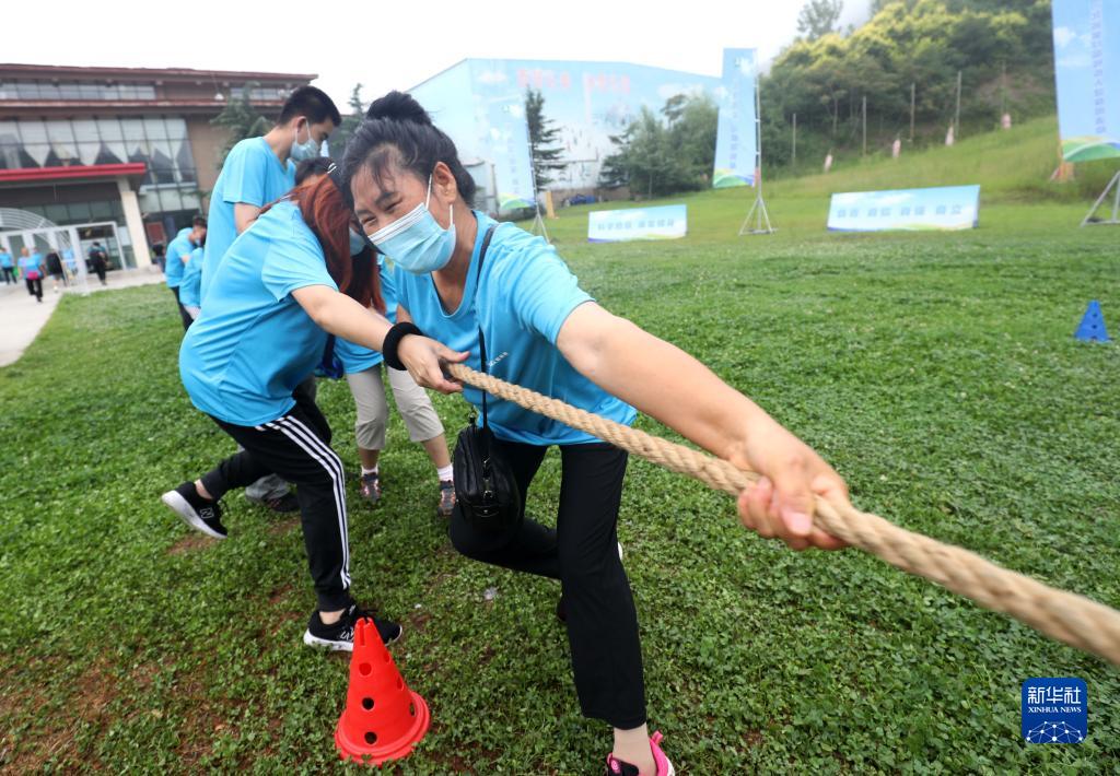 8月7日,在河北省石家莊市鹿泉區(qū)西部長青景區(qū),人們進(jìn)行拔河比賽。