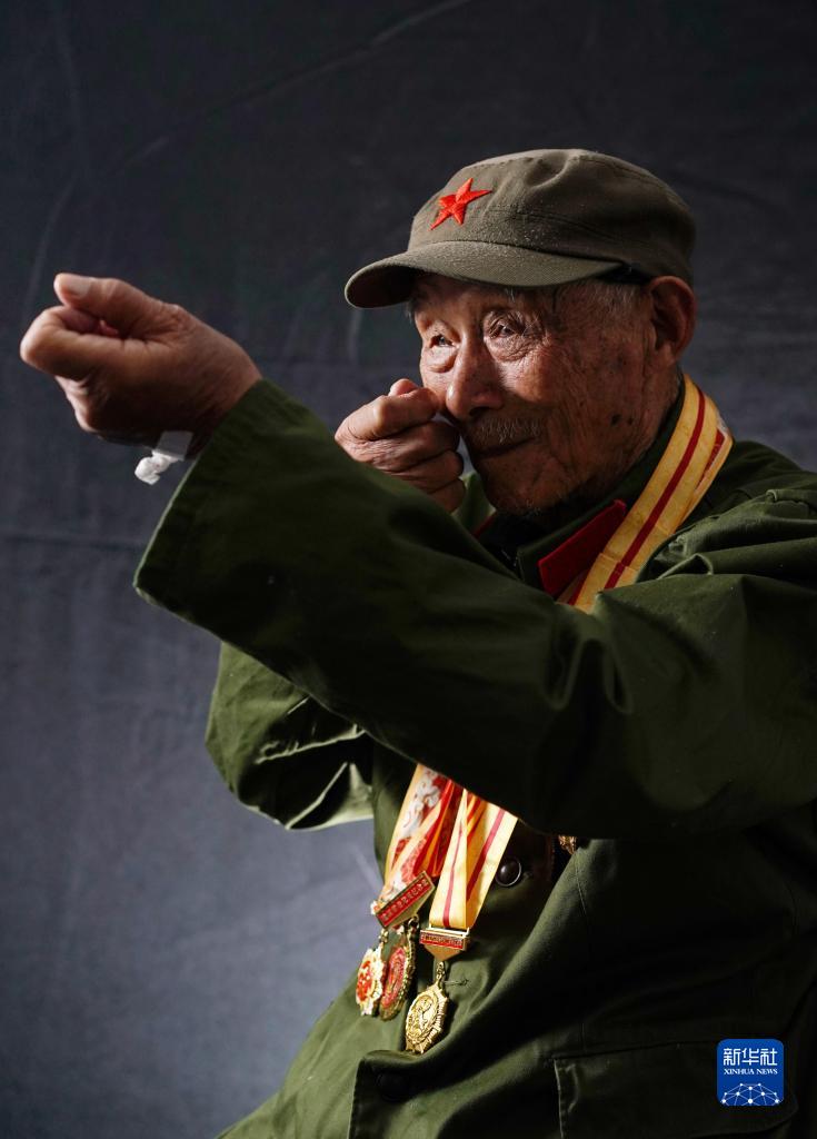 6月17日,在江蘇省宿遷市泗陽縣,抗戰(zhàn)老戰(zhàn)士殷道傳講述抗戰(zhàn)故事。