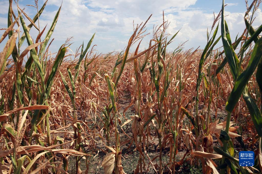 8月7日,在羅馬尼亞泰萊奧爾曼縣,一片玉米地因干旱缺水而干枯。