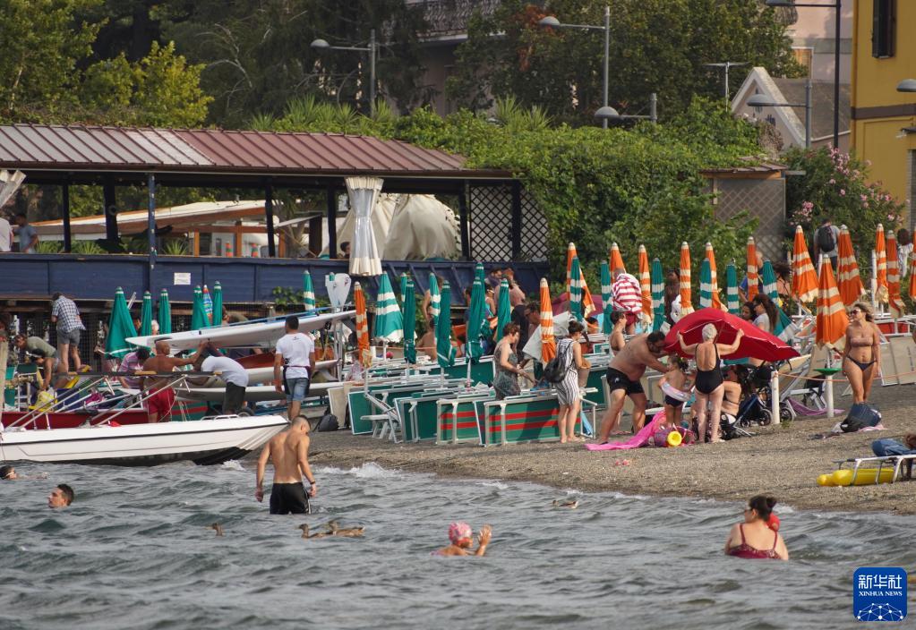 8月7日,游客在意大利布拉恰諾湖戲水休閑。