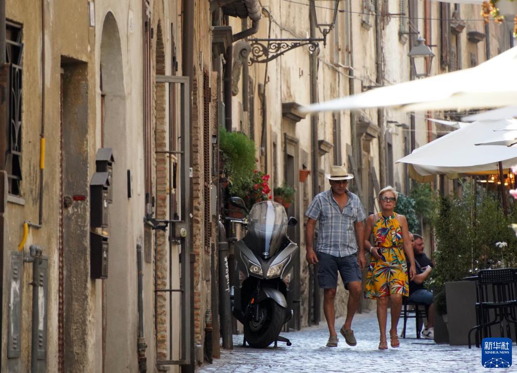 8月7日,游客在意大利布拉恰諾觀光。