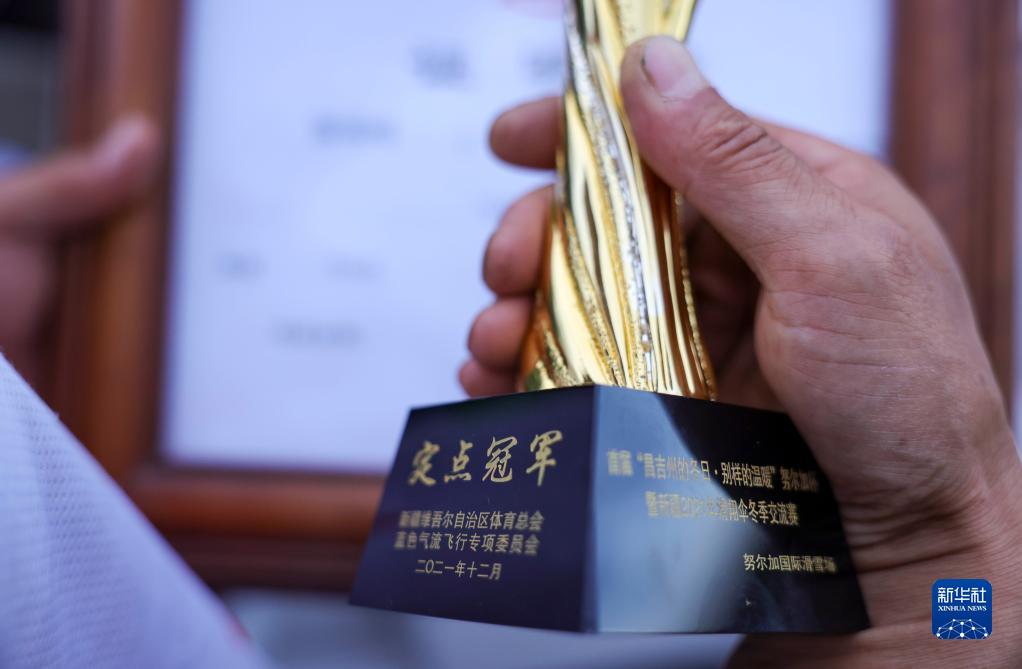 這是陳瑞峰在2021年12月參與冰雪節慶活動滑翔傘交流賽時所獲的獎杯(6月14日攝)。新華社記者 胡虎虎 攝