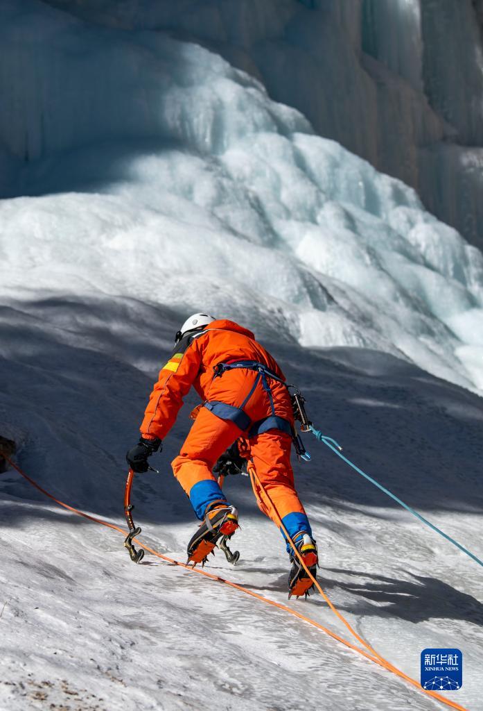 陳瑞峰在新疆烏魯木齊南郊的山區(qū)攀冰(2021年1月16日攝)。新華社記者 胡虎虎 攝