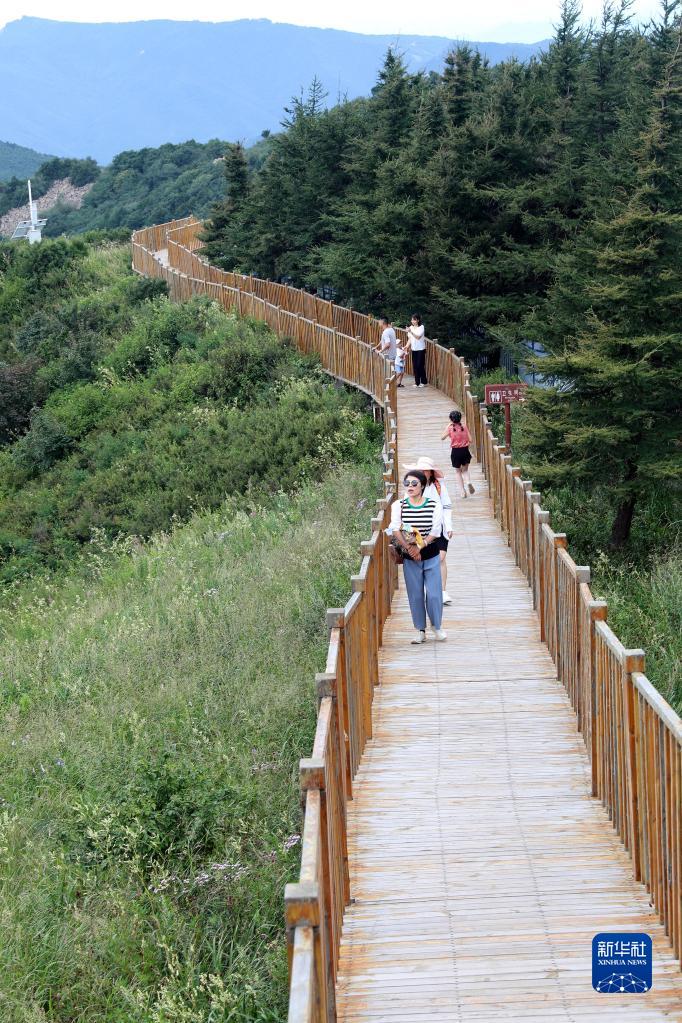 8月8日,游客在灤平縣白草洼國家森林公園休閑游玩。