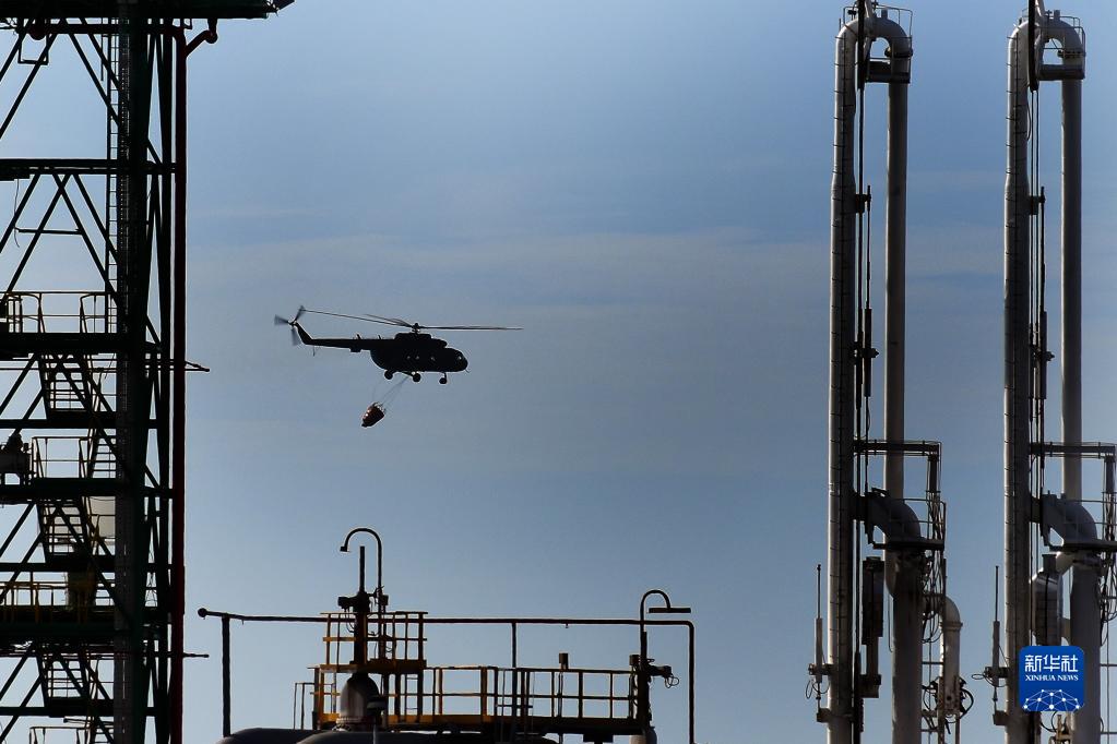 8月8日,在古巴馬坦薩斯省,消防直升機在火災現場作業。