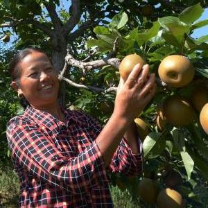 8月9日,村民在貴州省遵義市余慶縣白泥鎮明星社區果園采摘金秋梨。