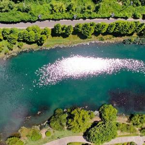 8月9日拍攝的花溪國家城市濕地公園十里河灘景區風光(無人機照片)。