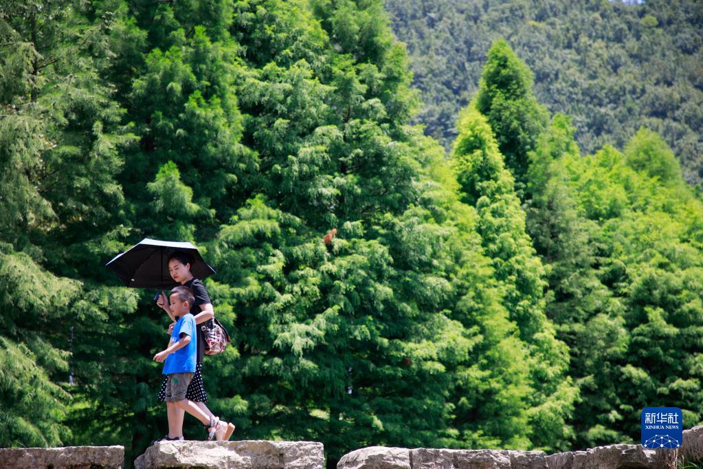8月9日,游客在花溪國家城市濕地公園十里河灘景區(qū)內(nèi)游玩。