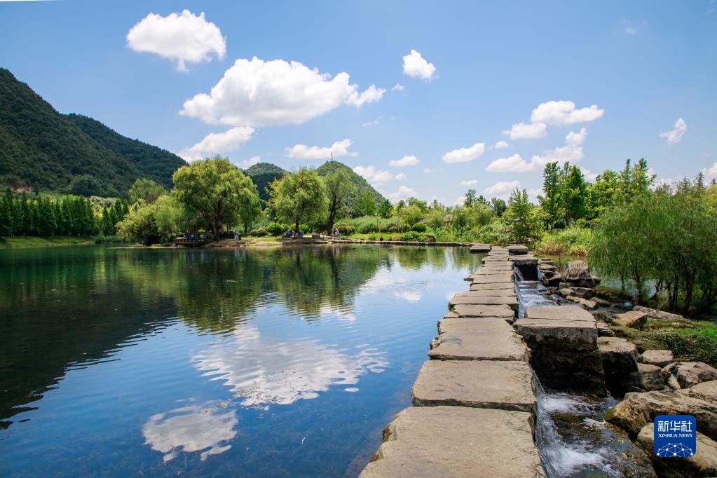 近日,貴陽市花溪國家城市濕地公園內處處綠意盎然,碧水青山吸引游人前來游玩。