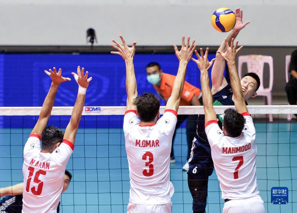 當日,在泰國佛統舉行的2022年男排亞洲杯小組賽中,中國隊以3比1擊敗巴林隊。新華社發(拉亨攝)