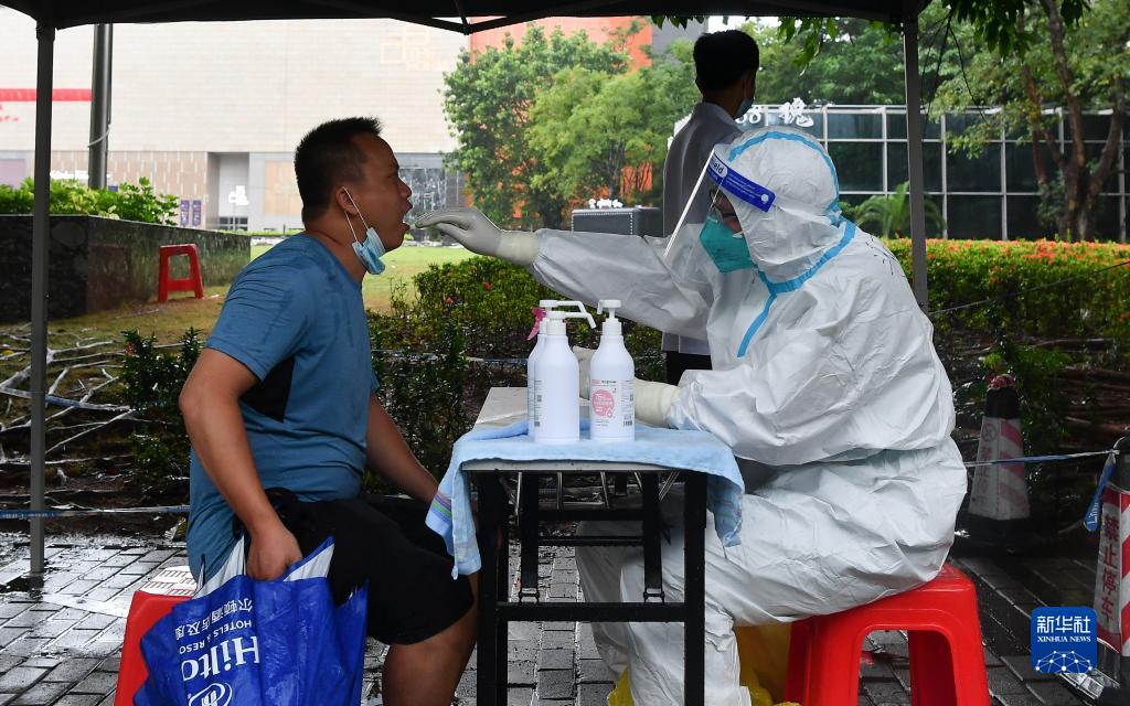 8月10日,居民在海口市龍華區百方廣場核酸采樣點接受核酸采樣。