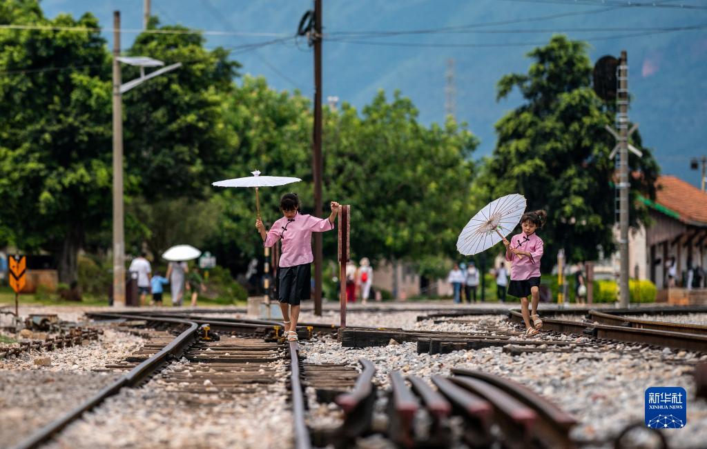 游客在云南省蒙自市碧色寨火車站景區游覽(8月9日攝)。