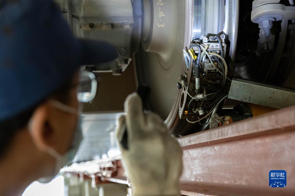 8月10日,探傷輔助工在檢查設備定位情況。 新華社記者 王翔 攝